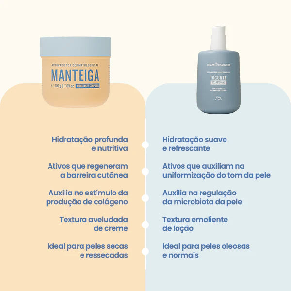 Textura encorpada, hidratação intensa e nutrição que dura: a Manteiga Hidratante da Beleza Brasileira é aquele abraço quentinho que sua pele ama. Ideal para quem precisa de uma hidratação intensa e duradoura, ela combina manteigas e óleos poderosos com ativos bioestimuladores de colágeno que recuperam o toque macio e o brilho natural da pele. O resultado? Pele mais firme, elástica e protegida contra o ressecamento, com um sensorial delicioso e toque aveludado que fica o dia todo.